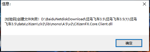 狂鸟飞车 校验码创建文件失败修复方法